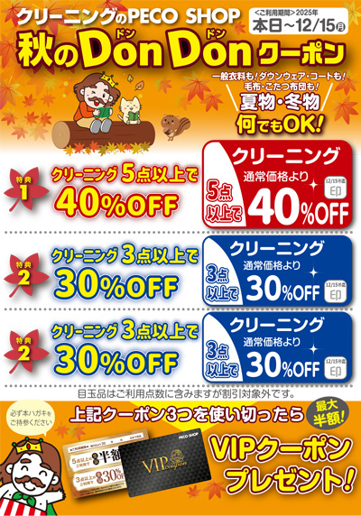 出せば出すほどドンドンお得!『秋のDonDonクーポン』★PECO SHOP 会員様限定★